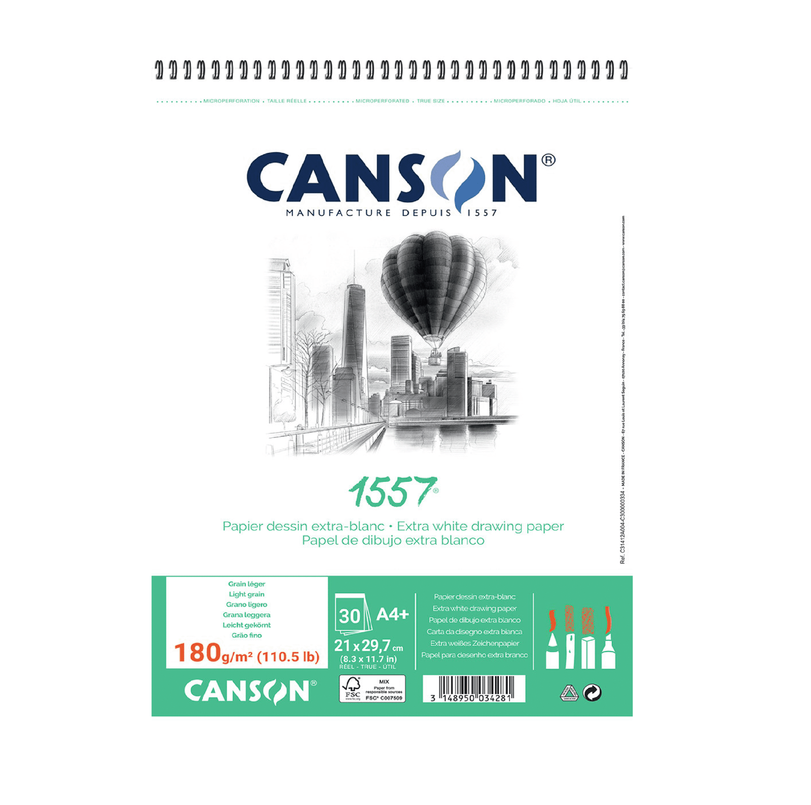 Le papier 1557 est un papier sans acide, au grain léger, adapté à l’étude, au croquis et au dessin. 100 % alpha-cellulose, il ne contient pas de fibres de bois. Collé en masse et en surface, il résiste aux gommages répétés et ne peluche pas. Il se caractérise par sa couleur blanc pur. Pour crayon, encre, fusain, pastel.