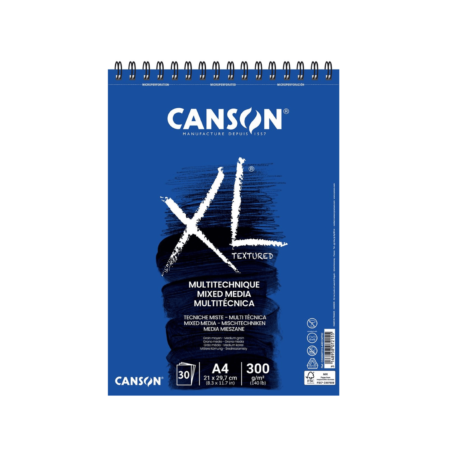Découvrez le bloc « XL Mix-Media » 30 feuilles format A4 de Canson. Ce papier 300g/m2 est un support au grain moyen, adapté aux techniques pures ou mixtes à base d’aquarelle, gouache, acrylique.