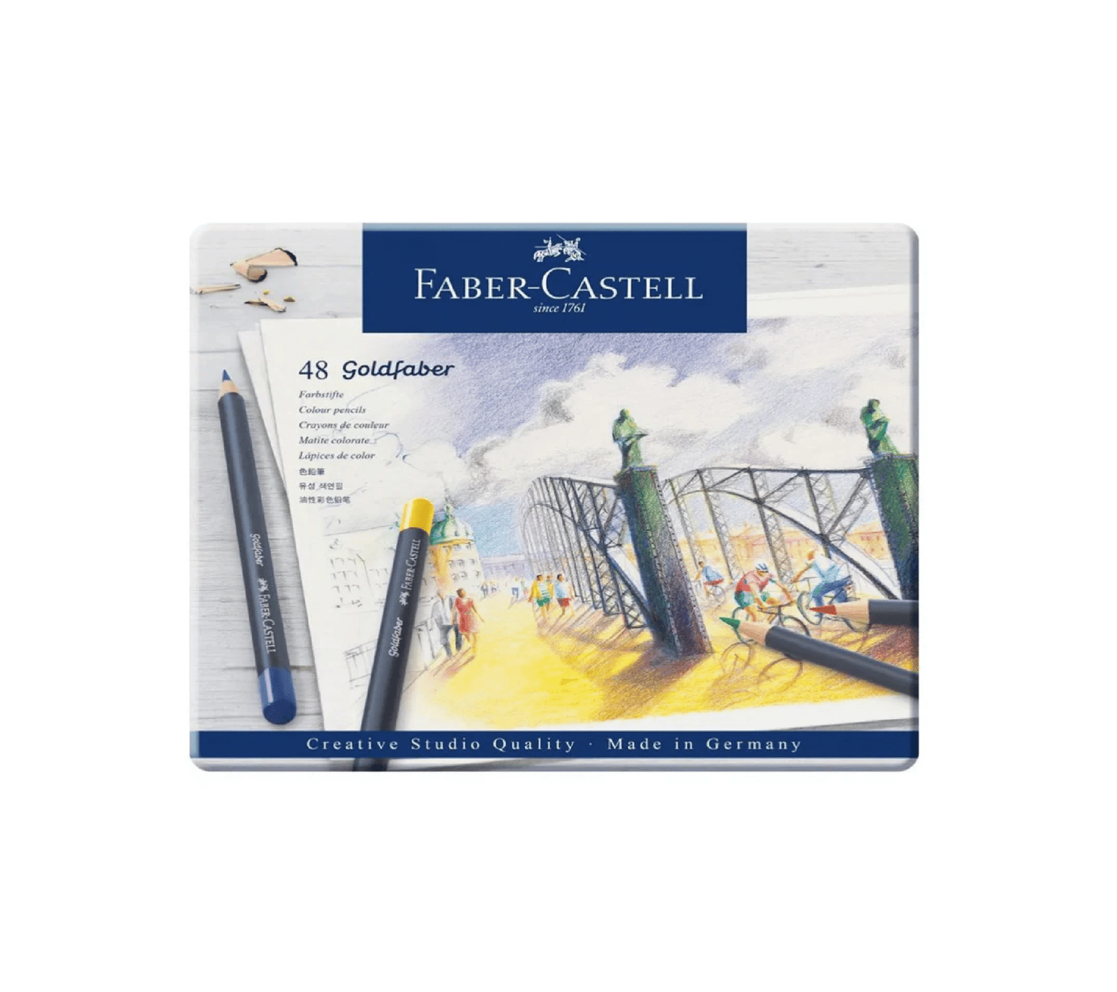 Les crayons Goldfaber sont fabriqués avec des matières premières de grande qualité et selon un procédé de fabrication innovant qui garantie une excellente résistance à la lumière.