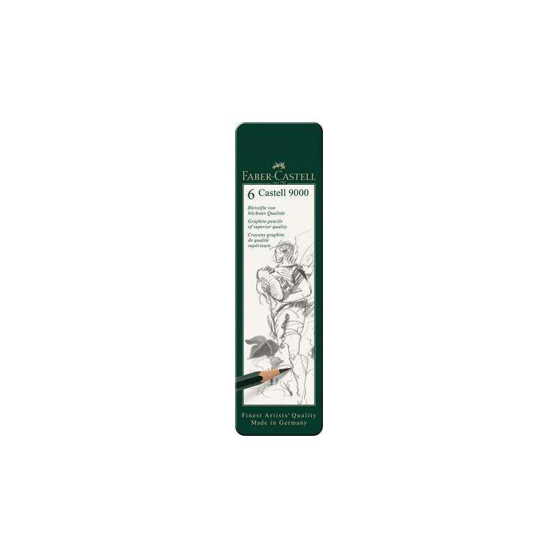 La boîte de 6 crayons graphite Castell 9000 – Faber-Castell offre des mines de qualité supérieure pour croquis, dessins techniques et ombrages précis.