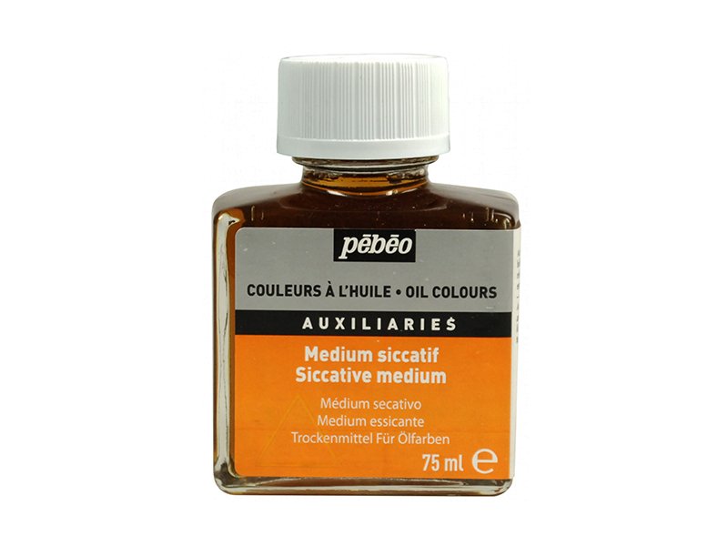Proche du médium hollandais liquide, il offre sensiblement les mêmes possibilités de travail. Le médium siccatif accélère la prise des films, augmente leur résistance et permet un séchage en profondeur. Il amène une légère coloration ambrée. Diluant : essence minérale