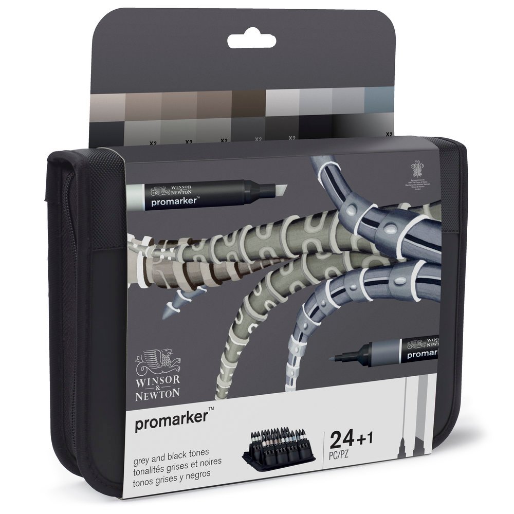 Explore the extensive Promarker colour spectrum with this 24-strong colour kit. As with all Promarker sets, it has been specifically curated to provide illustrators and artists with beautiful colours, every day. Please Note: Both sets pictured here contain the same colours. The markers in each set contain the same alcohol based dye ink.